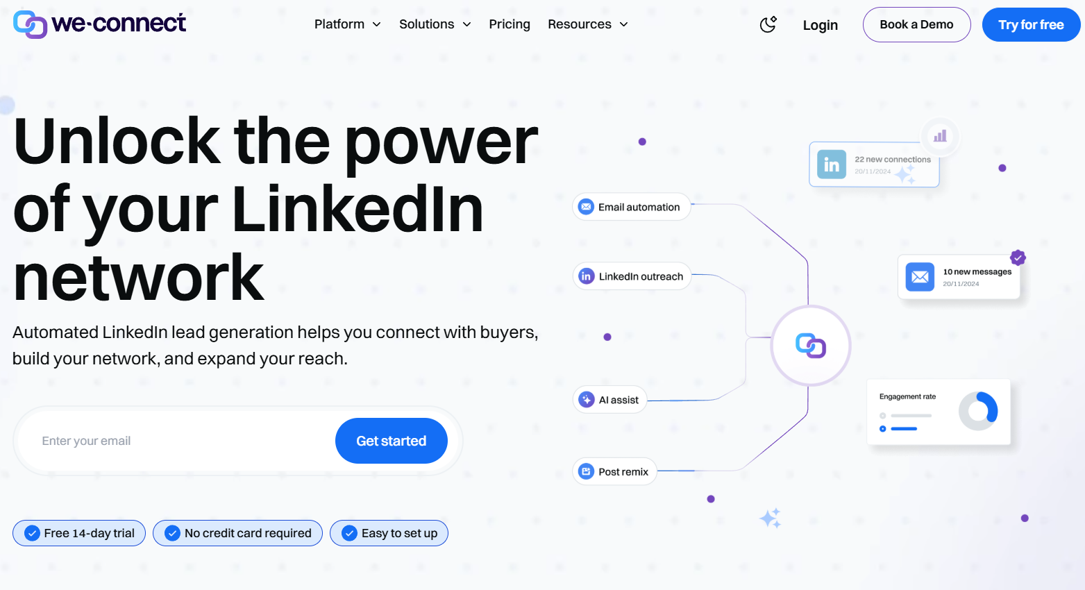 We-Connect is a cloud-based LinkedIn automation platform designed to help businesses run safe, scalable, and compliant outreach campaigns. Built with LinkedIn's daily limits and safety protocols in mind, it operates entirely in the cloud-meaning your campaigns continue running even when your computer is offline. The platform's focus on data protection and reliability makes it a favorite among agencies and corporate sales teams.