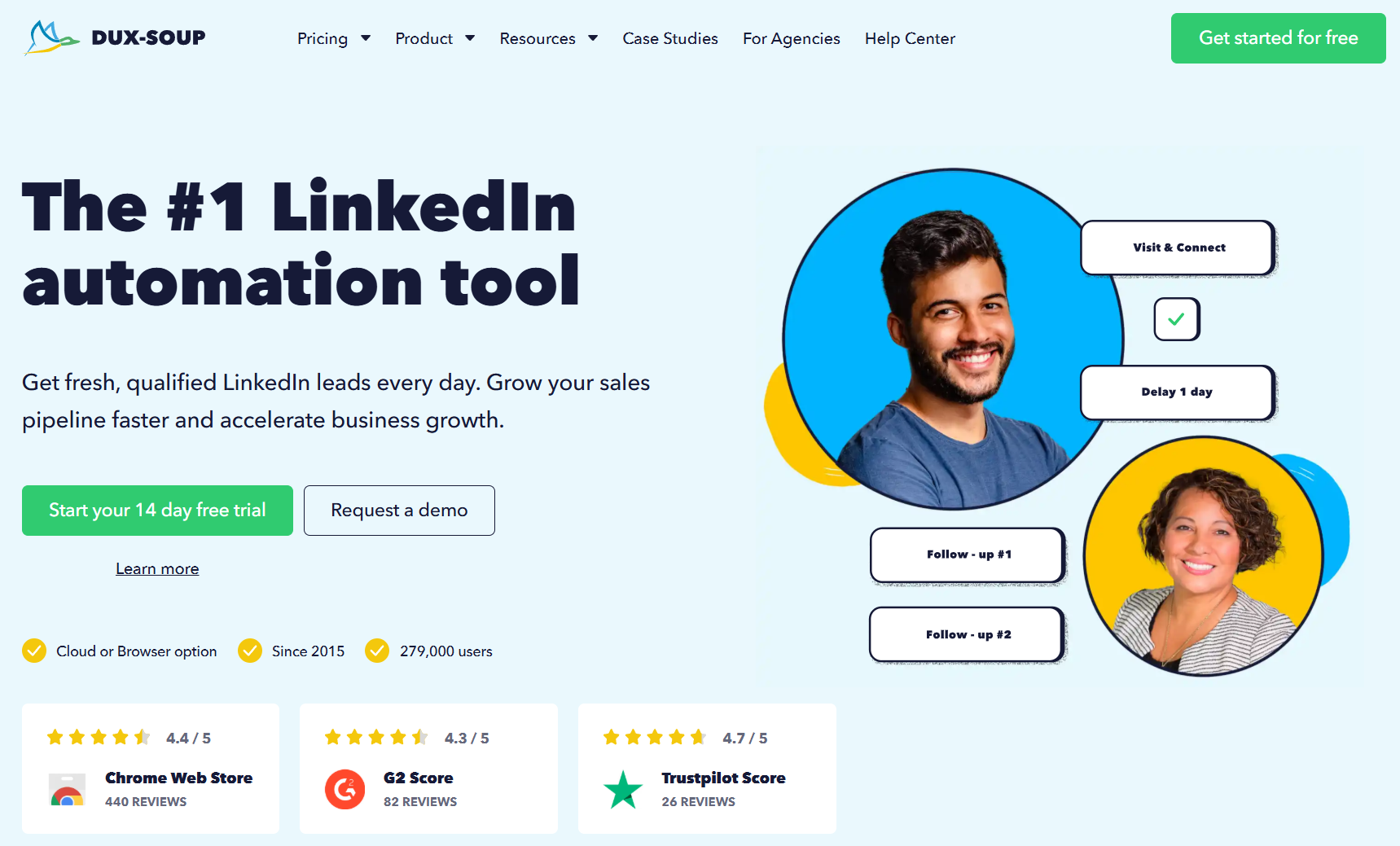 | Dux-Soup | Chrome-based tool for automated profile visits and messaging | From $14.99/month | Entry-level automation users |