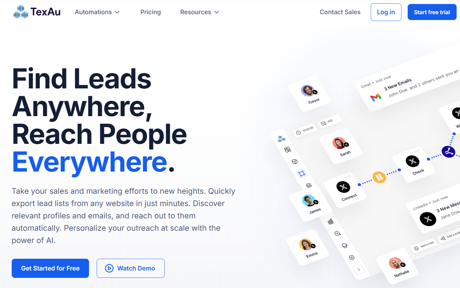 | TexAu | Workflow automation platform combining LinkedIn, email, and data enrichment | From $29/month | Multi-platform lead workflows |